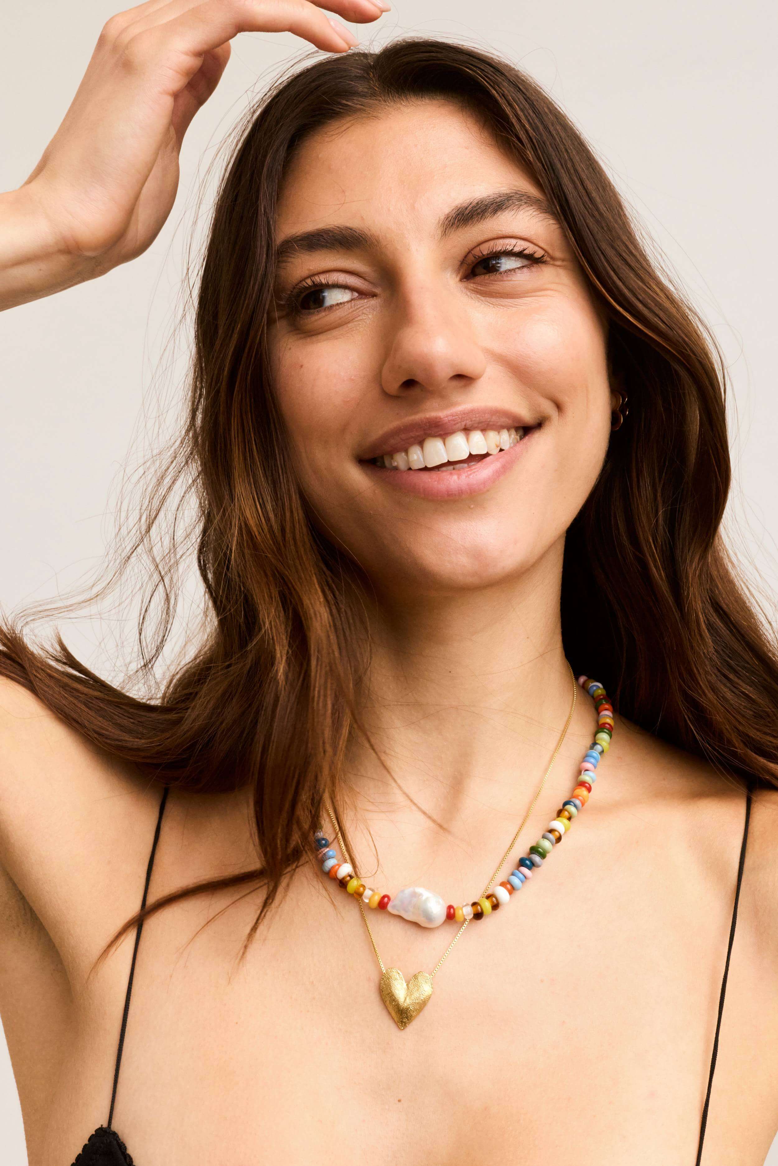 Colourful, carefree, and full of charm, Rosie is your new not-so-basic essential. A mix of vibrant glass beads paired with a single freshwater pearl, this piece adds a playful pop to any look, no effort required.