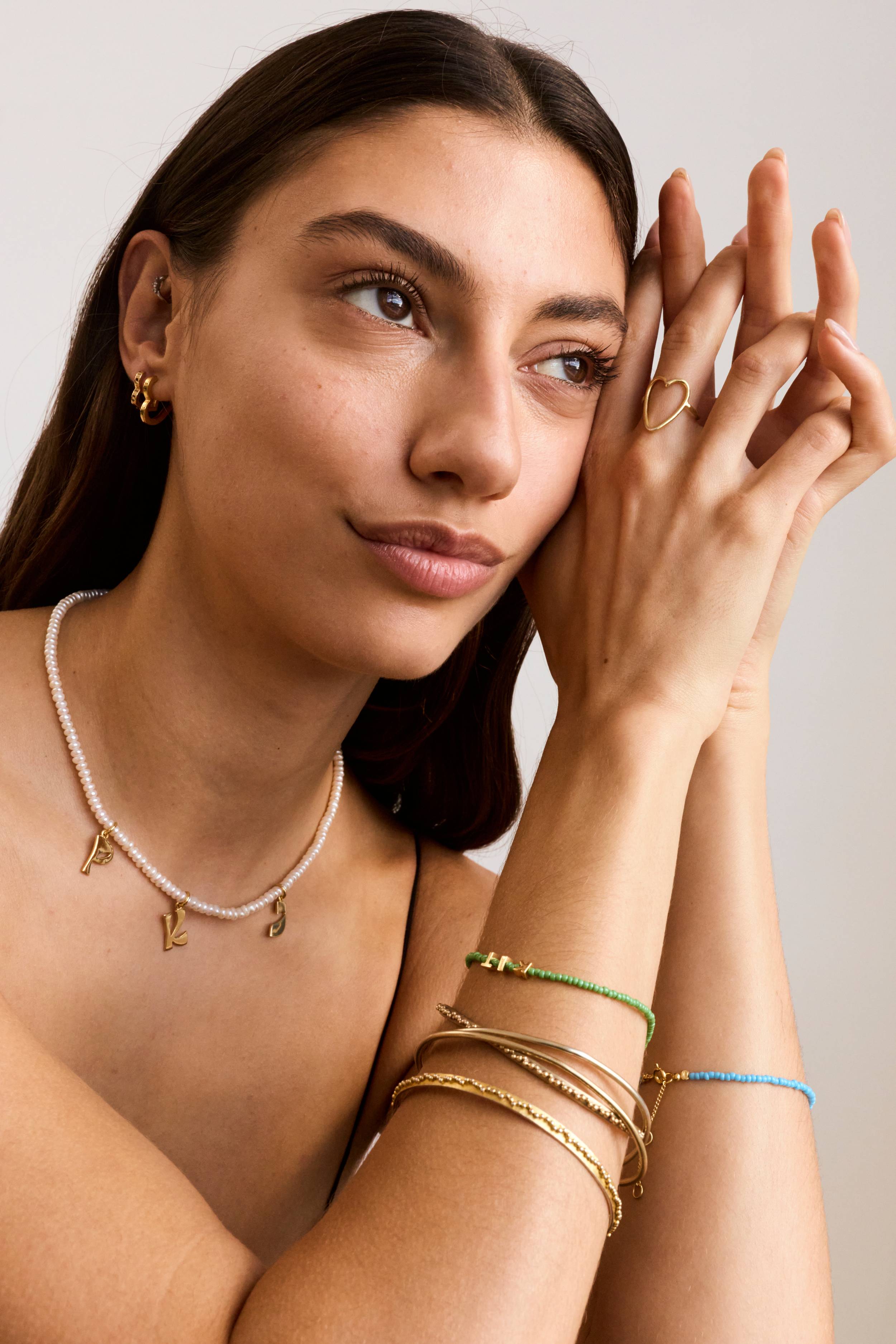 Dainty and meaningful, the Tiny Dancer Beaded Initials Bracelet combines vibrant colour with personalised style. Hand-beaded with your choice of three colourways and finished with luxe gold accents, this adjustable bracelet proudly displays up to five initials— perfect for keeping loved ones, inspiring words, or special memories close. Lightweight, playful, and utterly unique, it’s the wrist accessory you’ll never want to take off.