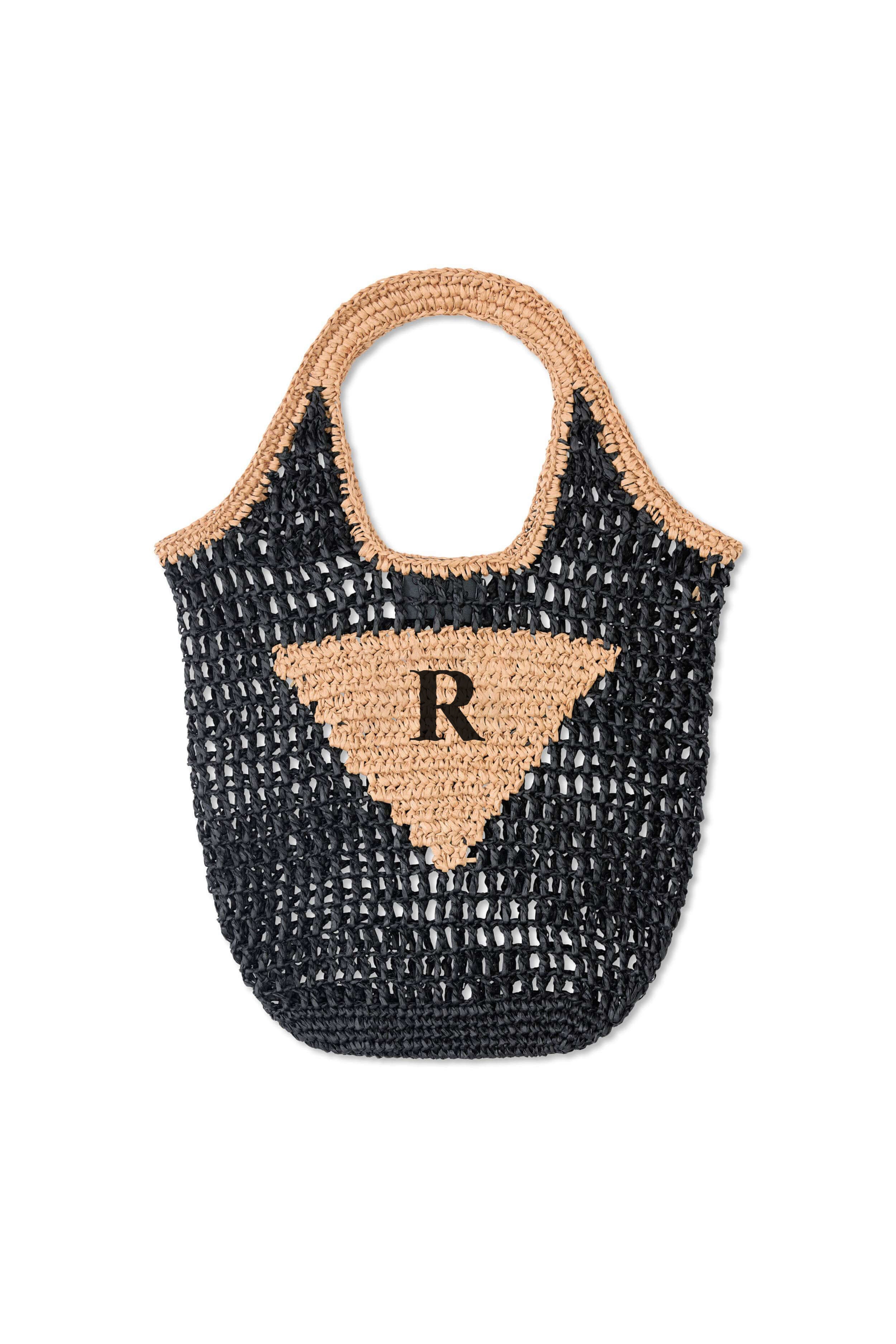 READY-TO-SHIP Personalised Raffia Bag Black/Tan 'R'