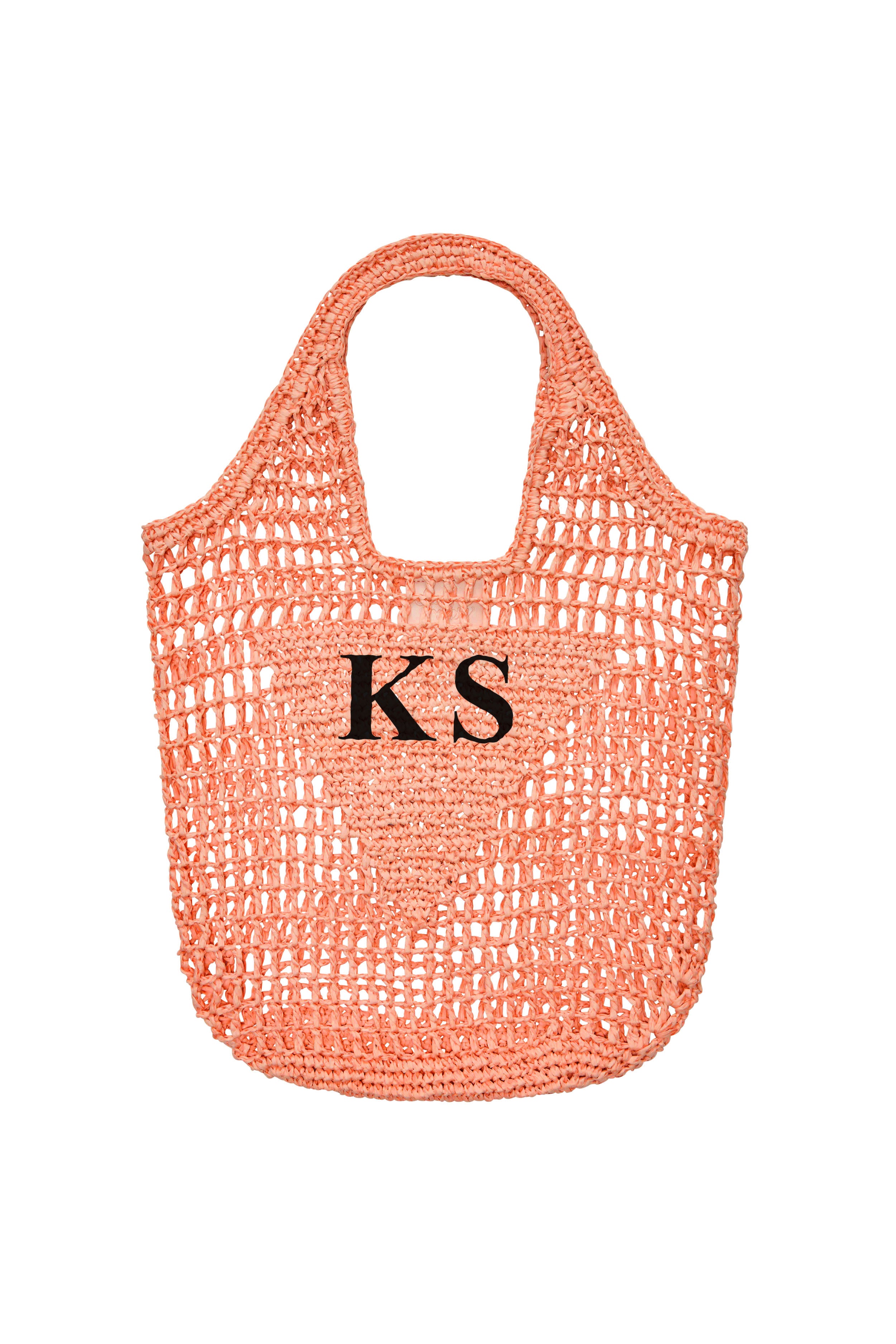 READY-TO-SHIP Personalised Raffia Bag Orange 'KS'