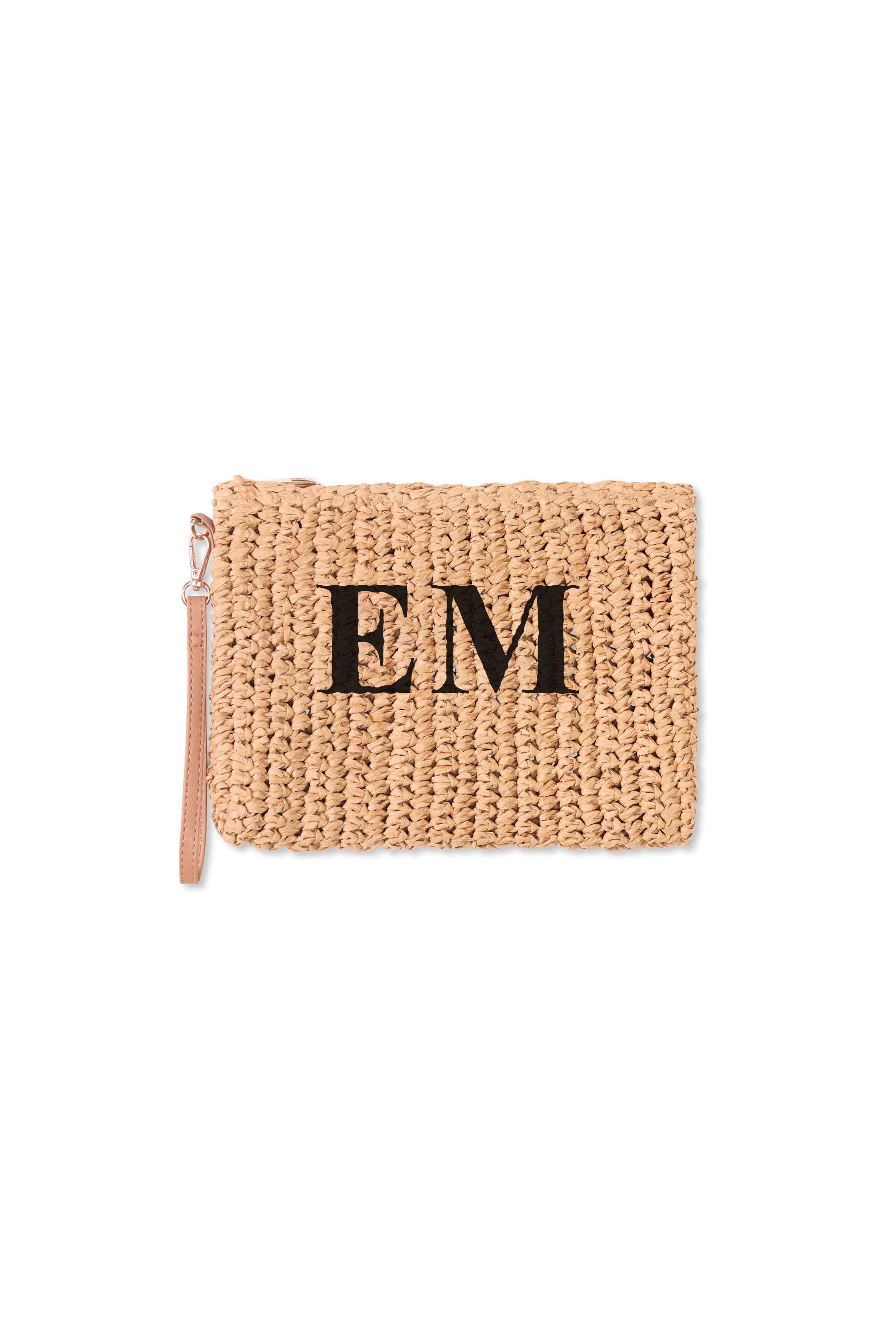 READY-TO-SHIP Personalised Raffia Clutch Natural 'EM'