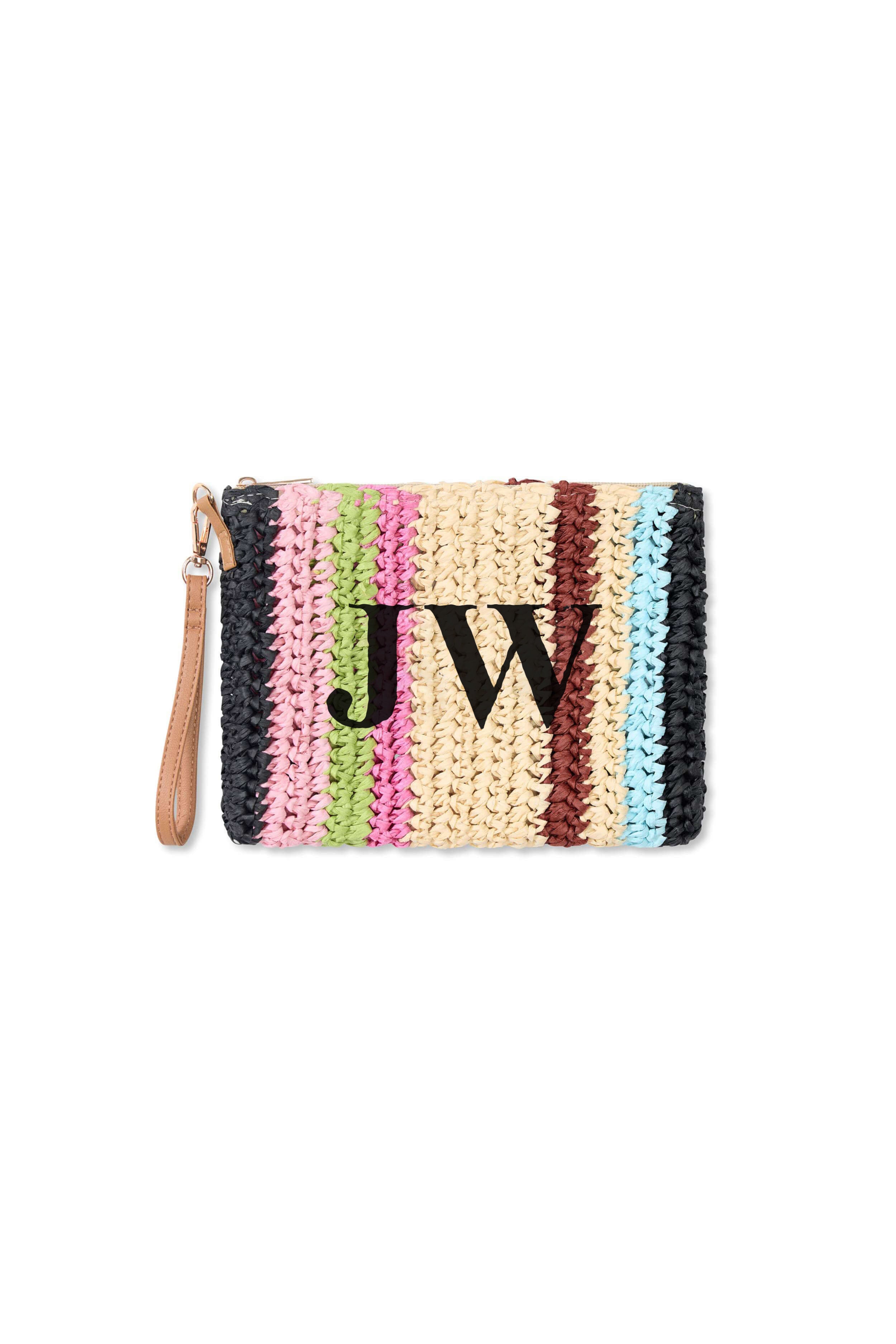 READY-TO-SHIP Personalised Raffia Clutch Striped 'JW'