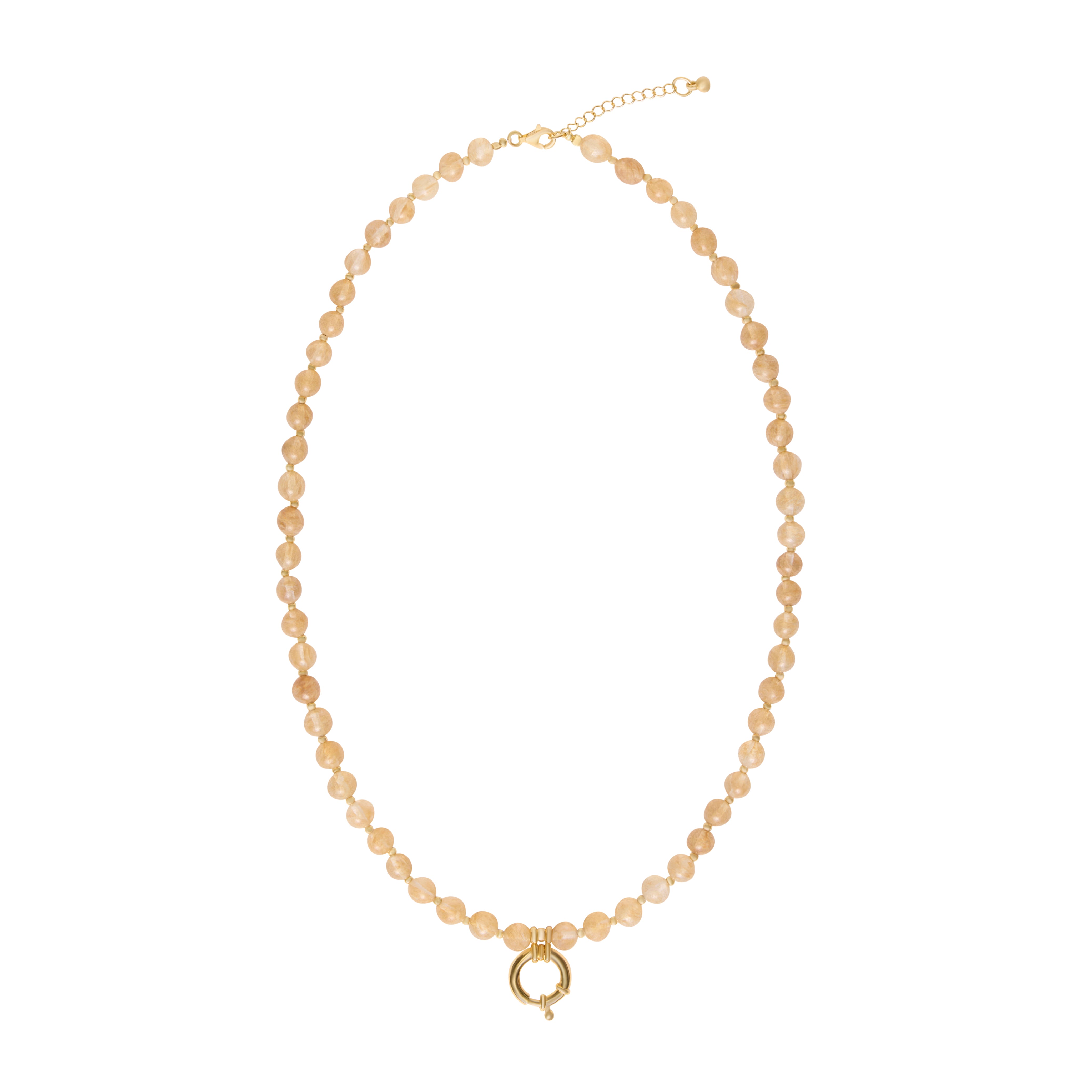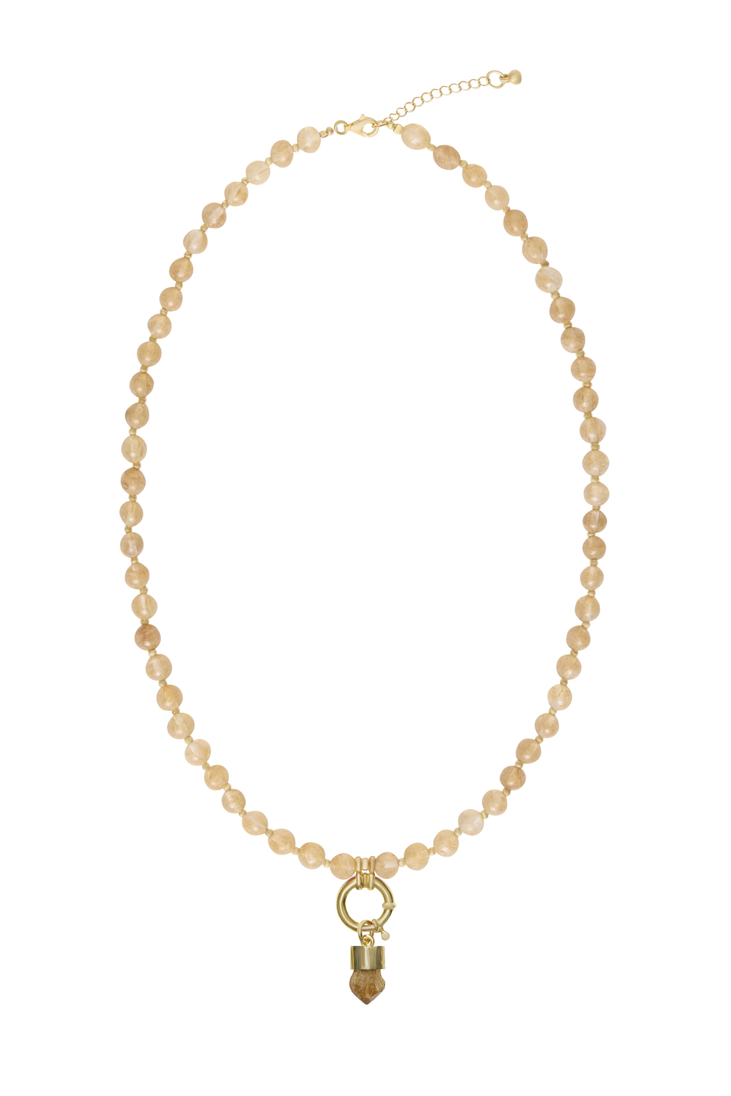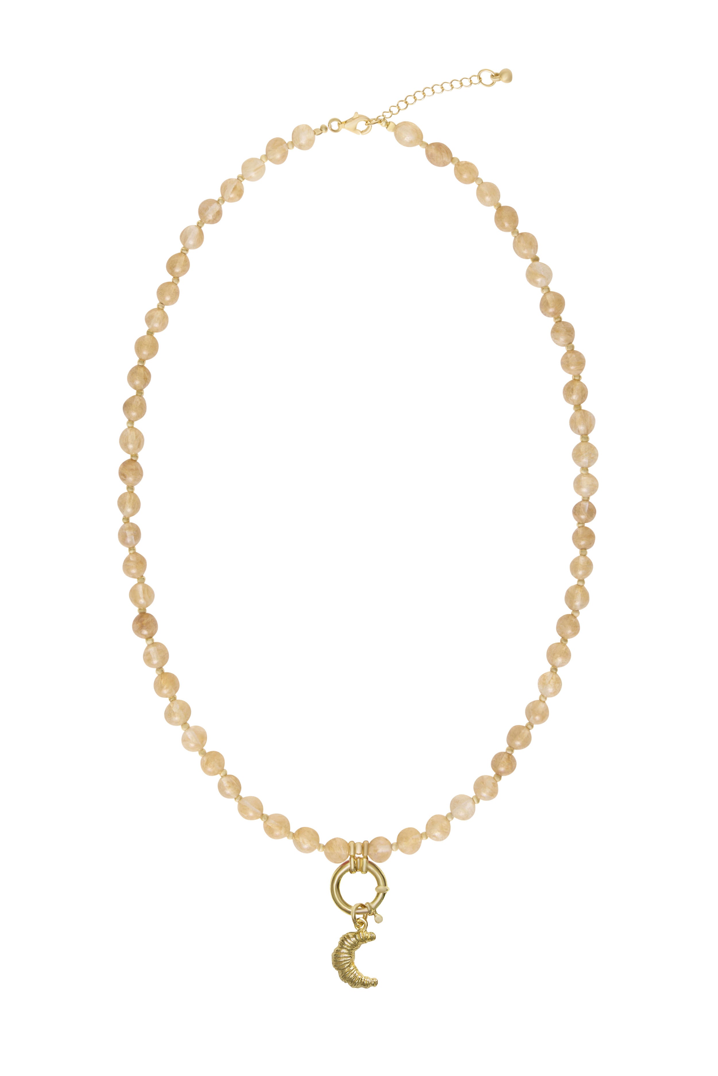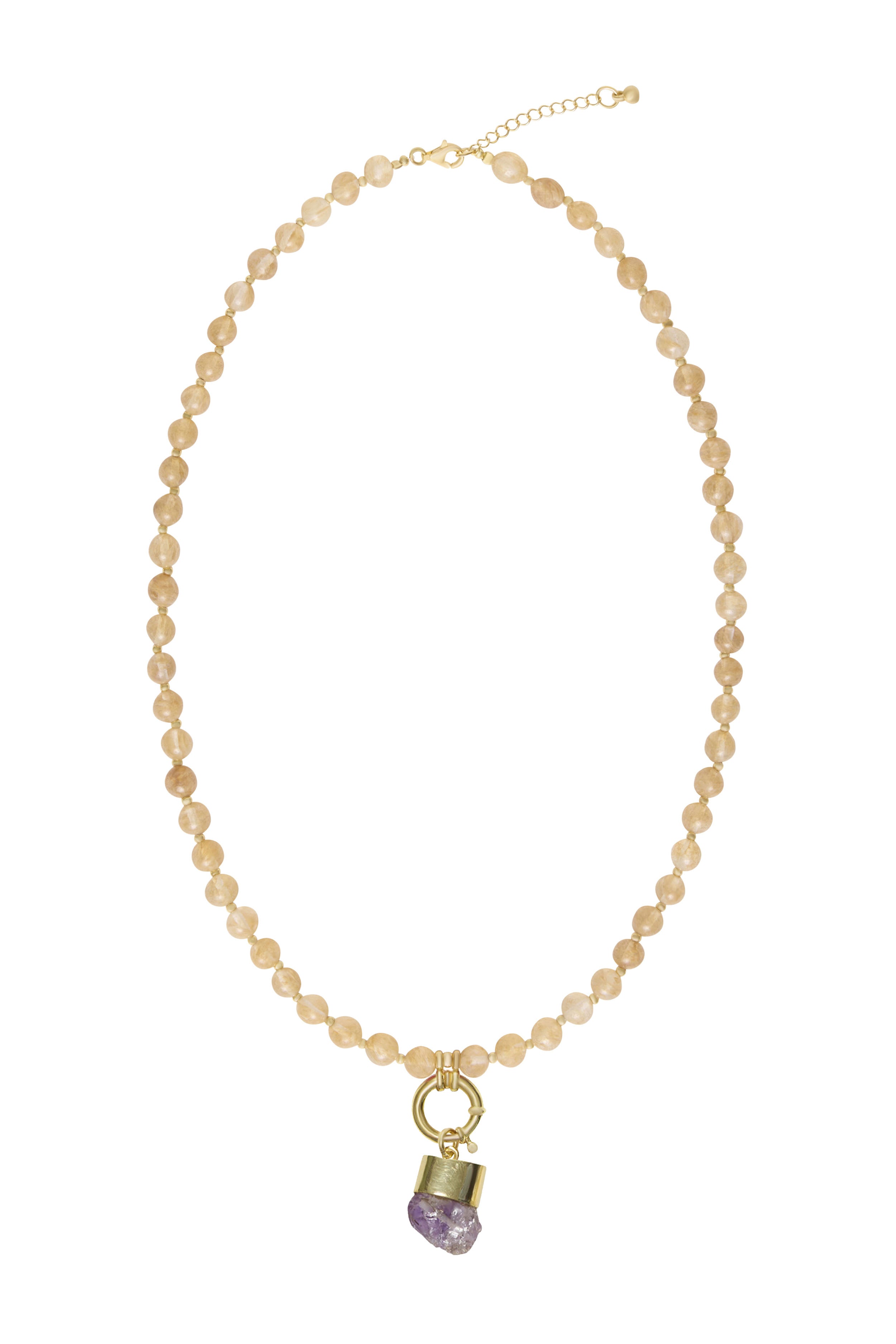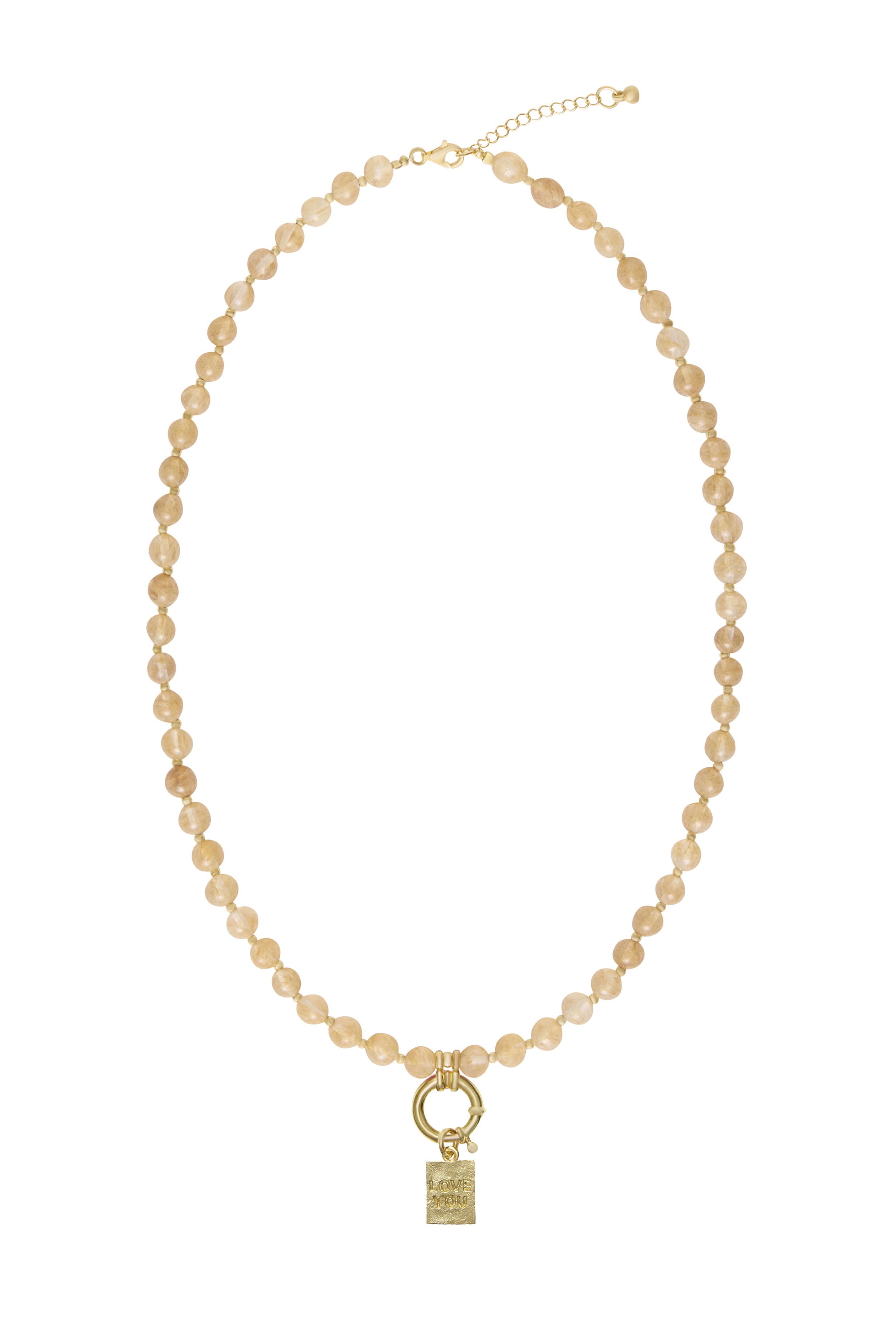 - Hand-beaded necklace in 10 unique bead colours, inspired by crystals like rose quartz, jade, and more