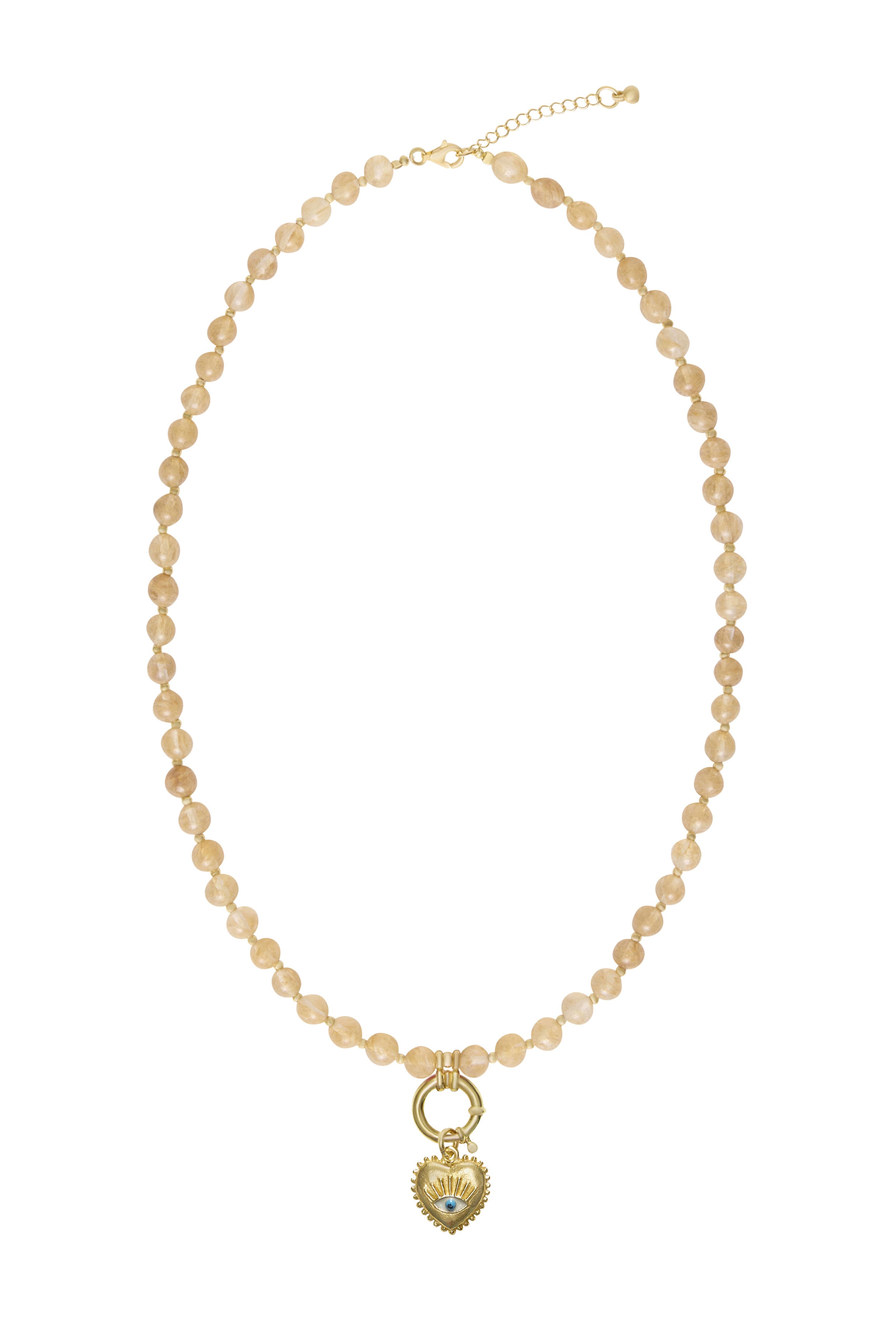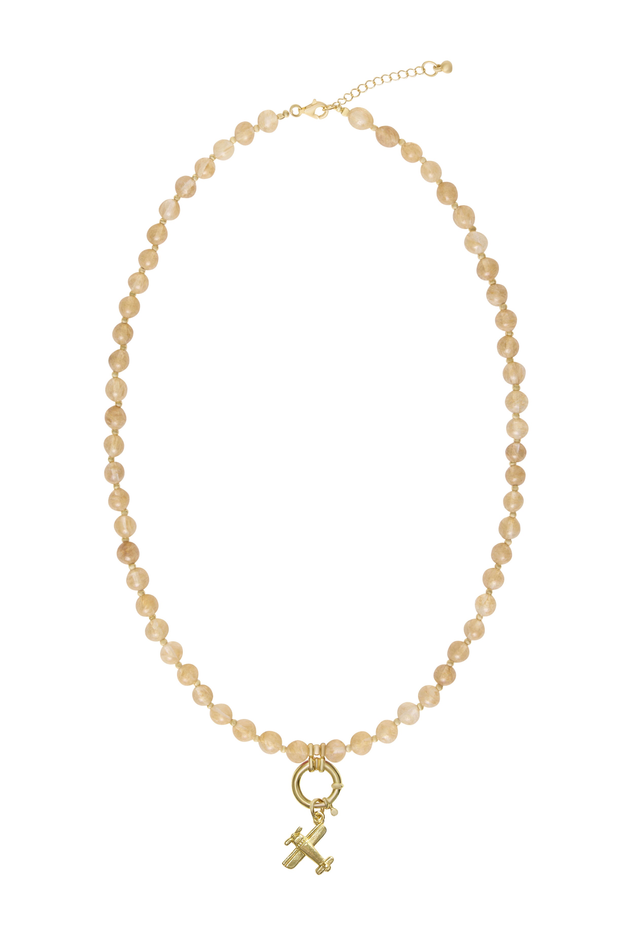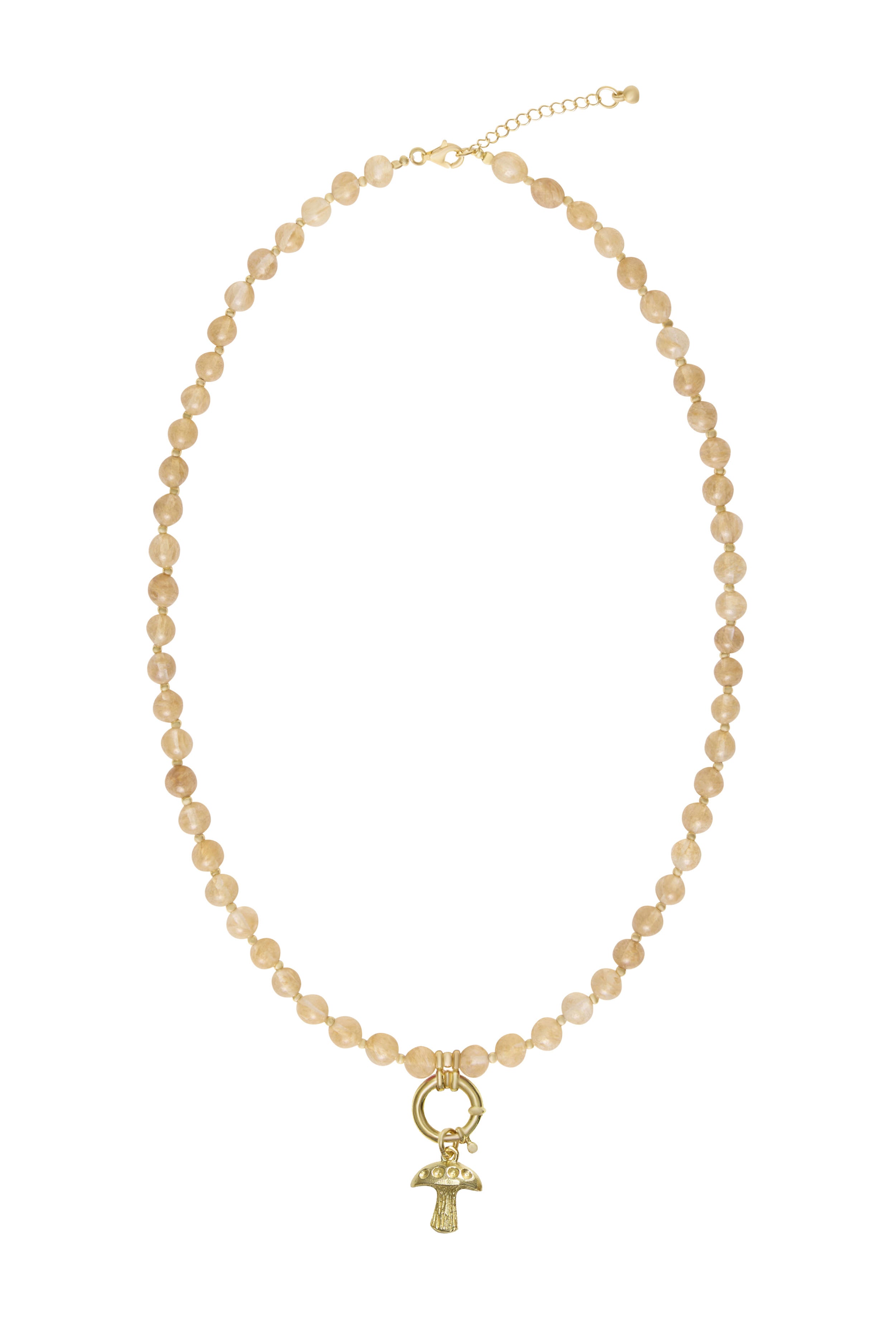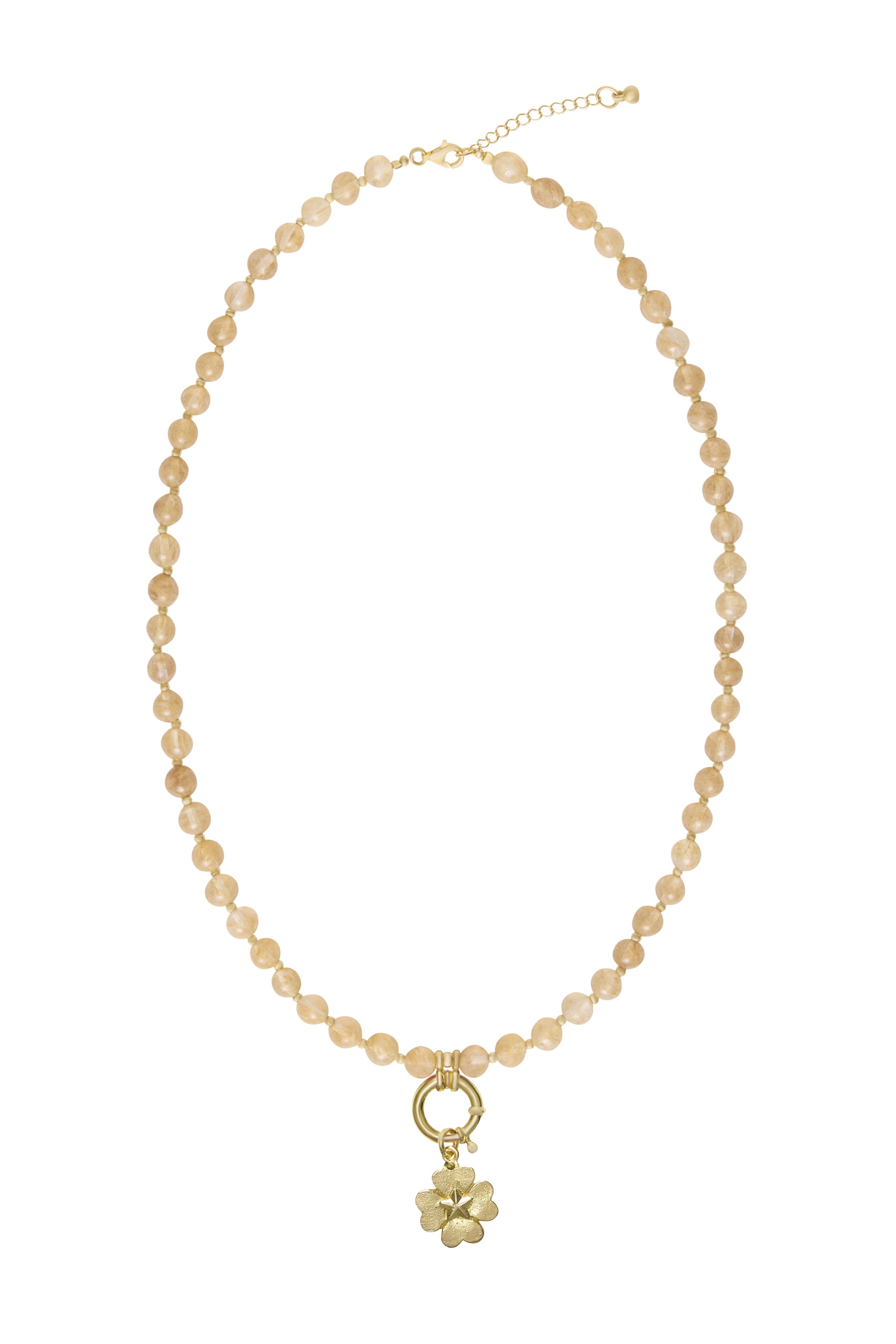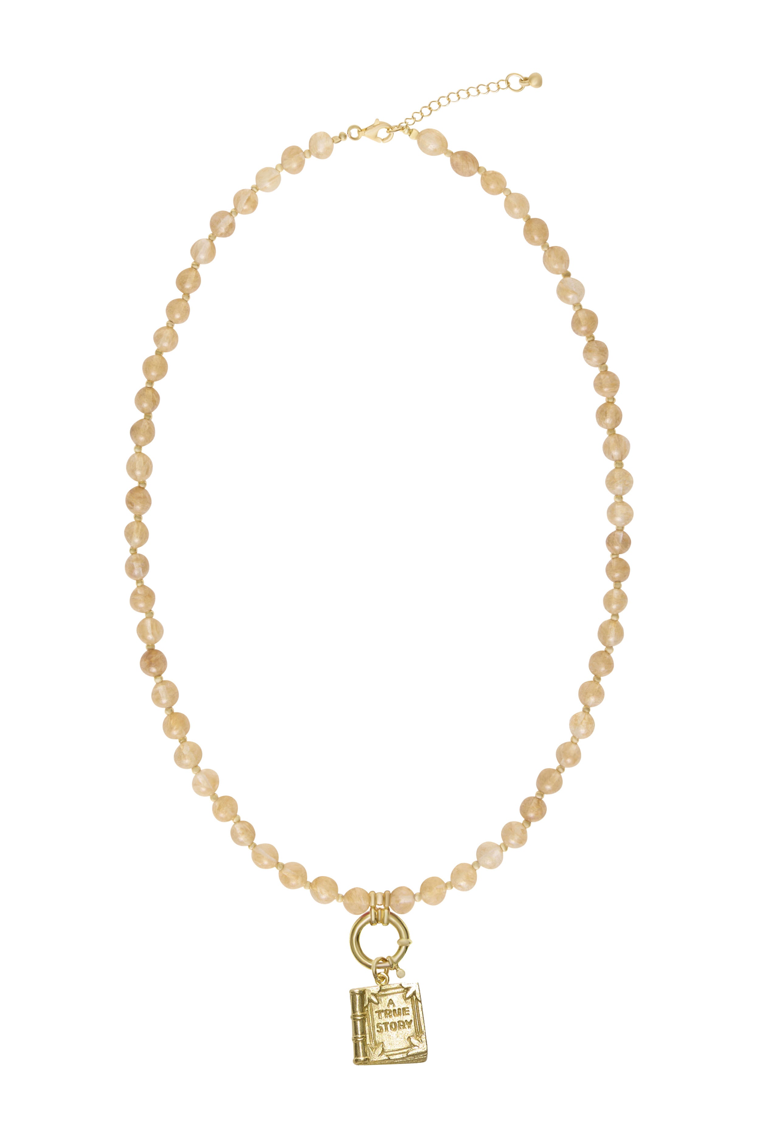 - Hand-beaded necklace in 10 unique bead colours, inspired by crystals like rose quartz, jade, and more