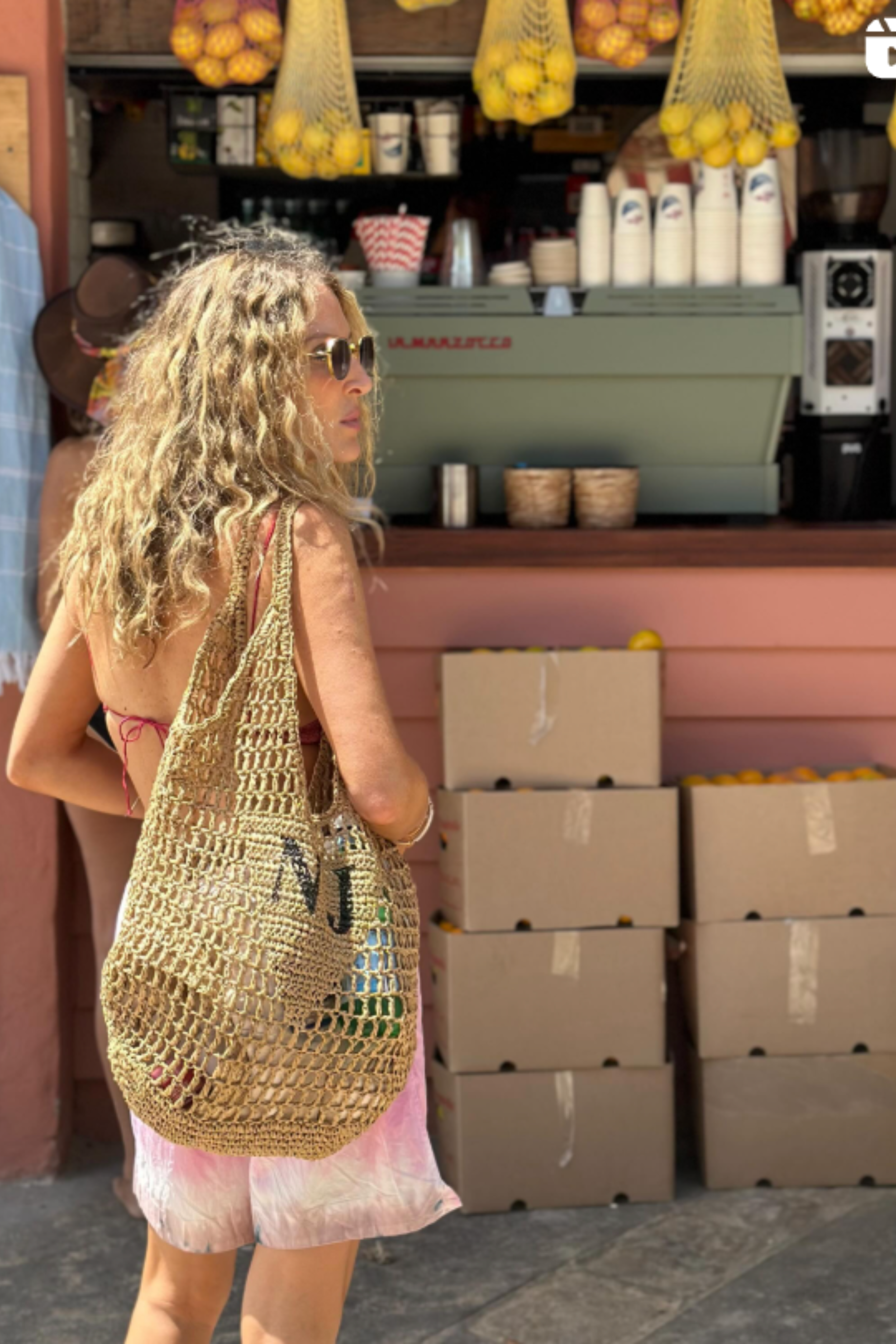 This straw raffia shopping bag is lightweight, slouchy, and effortlessly stylish making it the perfect companion for beach days, market strolls, and everything in between.