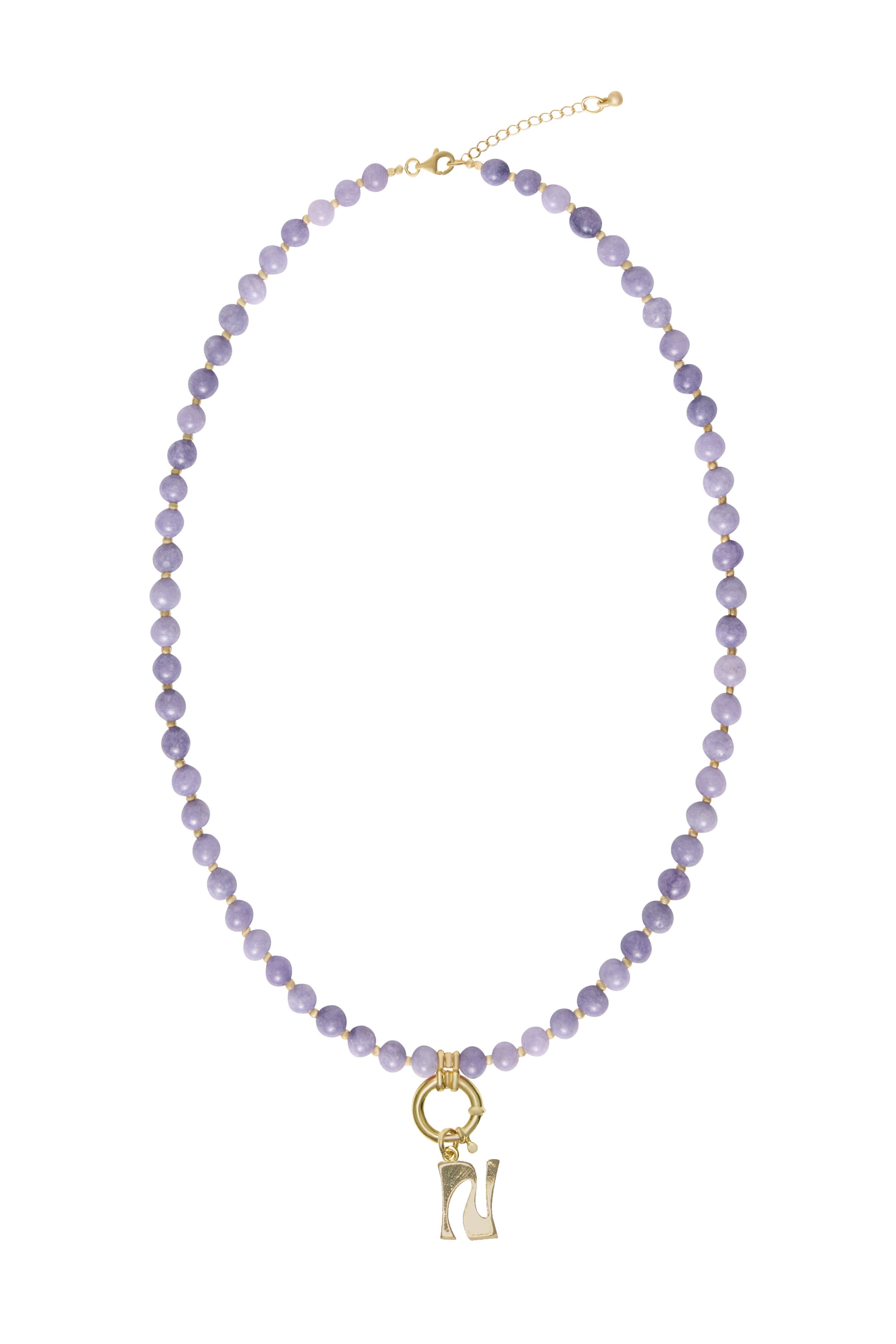 - Hand-beaded necklace in 10 unique bead colours, inspired by crystals like rose quartz, jade, and more